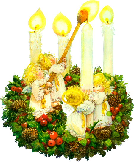 couronne de noel avec 4 bougies et 4 anges